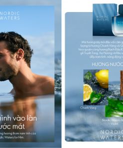 Nước hoa nam Nordic Waters for Him được sáng tạo từ cảm hứng “tự do đắm mình xuống mặt biển xanh thẫm”. Để tạo ra một mùi hương của biển có thể gợi lên cảm giác mát mẻ tuyệt đỉnh cho Nordic Waters, người nghệ nhân đã sử dụng phân tử Cascalone® với vẻ đẹp “tinh khiết và mát lạnh đặc trưng, đồng thời vô cùng lịch lãm và nam tính.” Công thức Nordic Waters được hòa quyện với hương Quýt và Chanh Vàng để có “cảm giác rạng rỡ đầy sức sống từ những mùi hương họ Cam Quýt.” 1019/2023/XNQC-YTHCM)