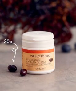 Thành phần: Trong mỗi viên:Tảo lục (Haematococcus pluvialis L.) ((5% Astaxanthin), Chất nhũ hóa (Lecithin hướng dương), Dalphatocopherol, L-ascorbyl 6-palmitate)) 60 mg, Chiết xuất việt quất đen 4: 1 (Vaccinium myrtillus) 50 mg, Vitamin C (L-ascorbic axit) 12 mg, Vitamin E (D-alphatocopherol) 1,8 mg